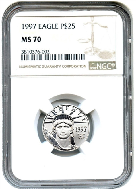 A 1997 $25 mint state platinum eagle coin graded ngc ms70